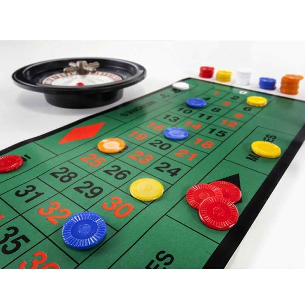 Componentes del juego: 1 ruleta de 145 mm,1 tapete,1 bolilla,Fichas plásticas